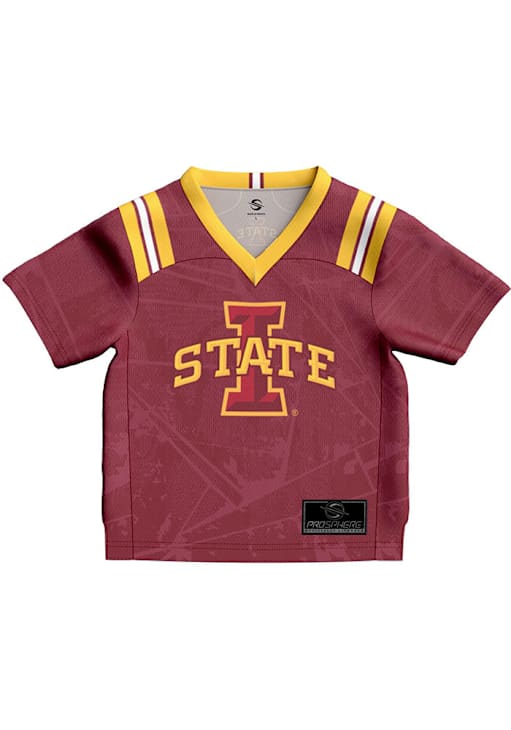 Product Details Product Details Stitched jock tag at bottom left hemScreen-print front and back numbersTagless collar with interior tapingClean-finished internal seamsStandard fit: not too tight and not too looseFit: True to Size100% POLYESTERMachine wash coldImported Officially Licensed Your little Cyclones Cyclones fan will be the envy of the crowd in this Iowa State Cyclones Baby Red Football Jersey! This Cyclones Jersey features a screenprint number on front with team name and number on back.