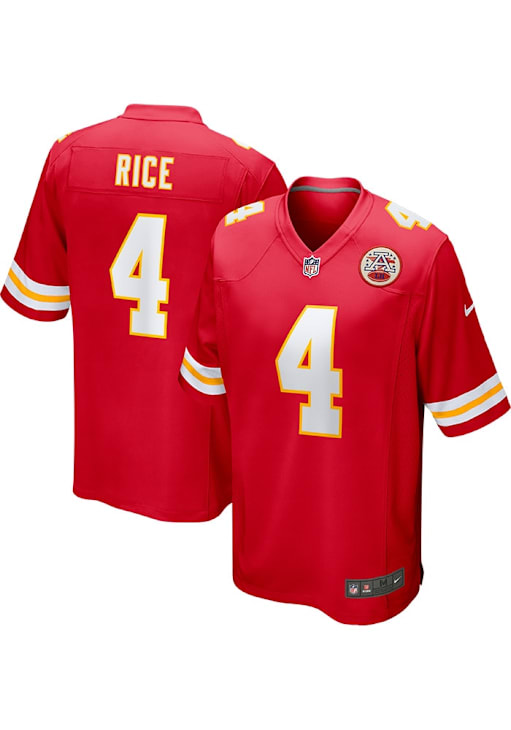 Get a piece of the KC Chiefs Chiefs action with this Kansas City Chiefs Red Rashee Rice Game Football Jersey. You'll look like one of the team as you wear this Jersey to support your Chiefs. With a Screen printed player and team graphics on front, breathable poly construction, jock tag in lower left hand corner, player name and number graphics on back, this Football Jersey makes a great addition to any Chiefs fan's closet.