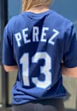 Show support for your favorite player in this Kansas City Royals Navy Blue Name Number Salvador Perez Short Sleeve Player Tee! This Player T Shirt features a lightweight material with a crew neckline and screen printed team and player graphics, so everyone will know you cheer for KC Royals, Salvador Perez! This is the perfect Royals Player Tee for wearing from every day to game day. Go Royals!