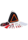 - The kit features a triangular-shaped tote with carry handle that doubles as a reflective hazard warning sign