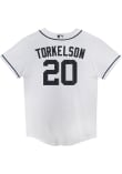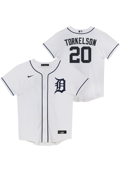 Hit your Detroit Tigers pride out of the park with this Detroit Tigers Boys White Home Replica Jersey! You'll be the best-looking fan in the stadium when you pull on this Detroit Tigers Baseball Jersey, which features a twill team wordmark across the front, player name and number screen printed on the back, heat seal locker tag, and Swoosh design on right chest. Go Tigers!
