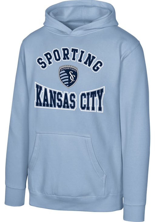 Those cold nights at the game won't keep your little SKC fan from cheering on the team in Sporting Kansas City Long Sleeve Hoodie! Give them this SKC Sporting KC Youth Light Blue Home Town Hooded Sweatshirt to keep warm in the stands. This Sporting KC Long Sleeve Hoodie features a screen print team graphic.