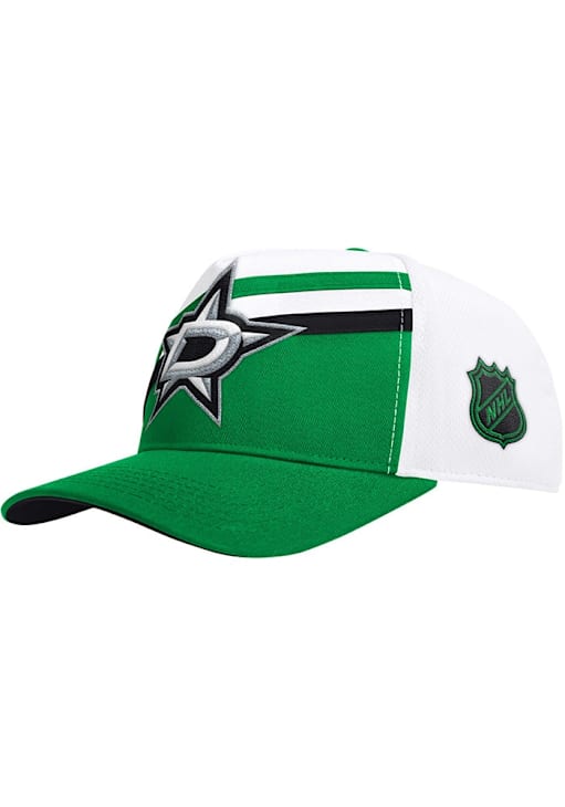 Product Details Product Details cotton front with cut & sew on panelathletic mesh back panelsraiser team embroidery logo on frontNHL Shield on left panelplastic snap closureCottonCurved BillLow CrownStructuredWipe clean with cloth or cleaning kit Officially Licensed This Dallas Stars White Adjustable Hat features a front embordered team logo.