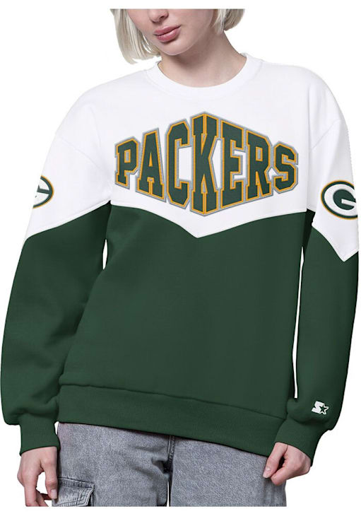 Make your way to the big game in this Green Bay PackersWomens Green Clutch Hit Crew Sweatshirt! This Packers Long Sleeve Sweatshirt features a center front applique team name both sleeve applique team logos center back conference logo. Stay warm and comfortable with this Womens Green Bay Packers Crew Sweatshirt.