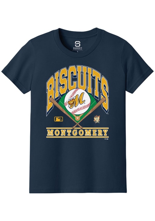 Your future Montgomery Biscuits will be ready for the game with this Montgomery Biscuits Youth Navy Blue Short Sleeve Tee. This Homefield T-Shirt features a team logo.