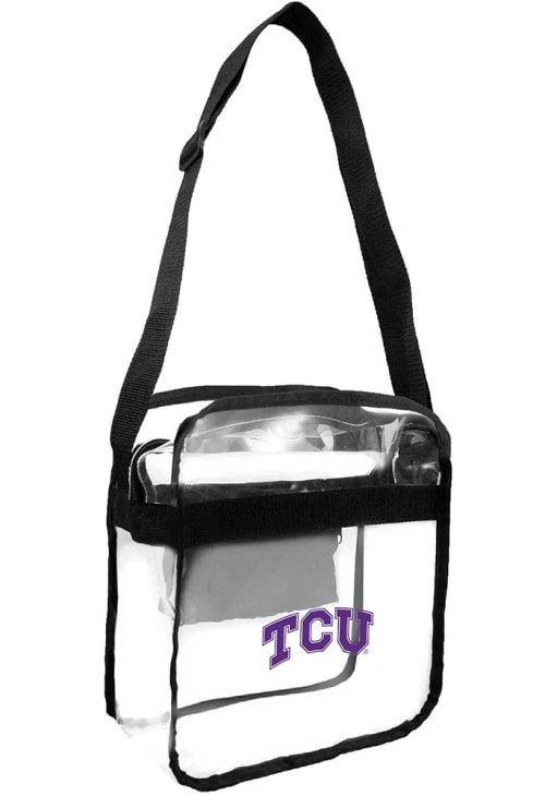 Product Details Product Details Complies with stadium policiesZipper closureAdjustable 48” strapCan be worn crossbody or over the shoulder11.5”L x 5.5“W x 11.5”HPLASTIC Officially Licensed This TCU Horned Frogs White Crossbody Clear Tote is a perfect game day accessory for the die-hard Horned Frogs fan. This Womens Clear Tote features a zippered closure and adjustable strap.