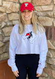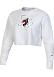 Make your way to the big game in this Texas Tech Red RaidersWomens White Reverse Weave Cropped Boyfriend Crew Sweatshirt! This Red Raiders Long Sleeve Sweatshirt features a screen print team logo with state outline on center chest. Stay warm and comfortable with this Womens Texas Tech Red Raiders Crew Sweatshirt.