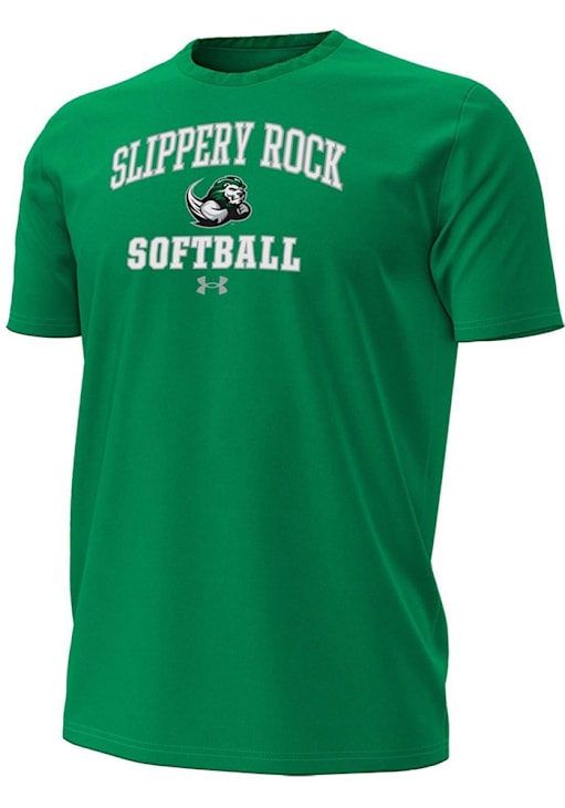 Show off your team pride in this Slippery Rock Green Softball Performance Short Sleeve T Shirt! This Slippery Rock Short Sleeve Tee features a screen print team graphic on center chest. Make sure everyone knows you root for the Rocky with this Green Slippery Rock T Shirt. Go Rocky!