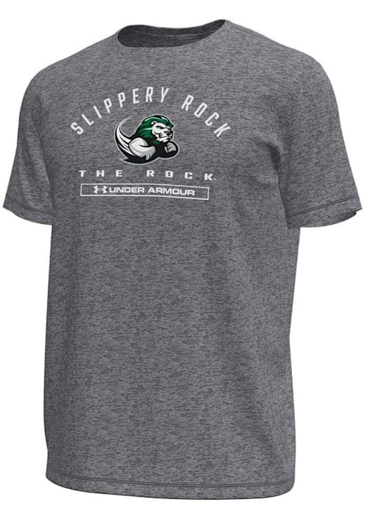 Keep cool while showing your Slippery Rock spirit in this Grey Name Tech Stretch T Shirt. This Short Sleeve is the perfect Tee for working out, heading to class, or cheering on the Rocky. Featuring a screen print team graphic, there's no mistaking your Slippery Rock pride in this Rocky Name Tech Stretch T Shirt!
