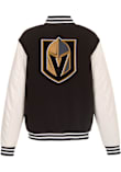 - Soft-to-the-touch polyester fleece body with a faux leather sleeves and nylon shell reverse side