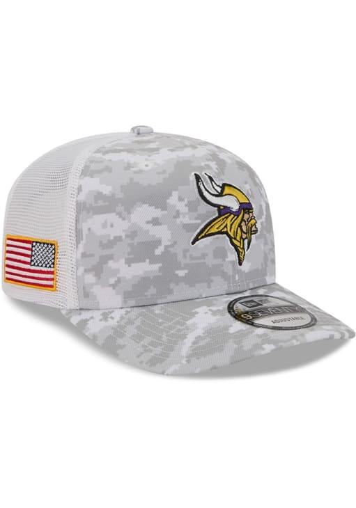 New Era Minnesota Vikings 2025 Salute to Service Camo Fan Pack 9SEVENTY Trucker Adjustable Hat - G..