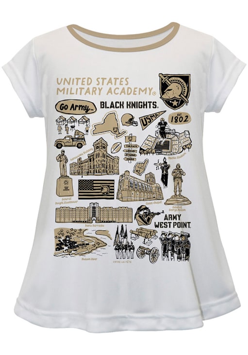 Kids, show your support for your favorite team in this Army Black Knights Infant Girls White Short Sleeve Tee! This T-Shirt features a hand sketched artwork perfect to keep the new fan cheering for your favorite team, so everyone will know you cheer for the Army! This is the perfect Army Black Knights Infant Girls T-Shirt for wearing from every day to game day. Go Army!
