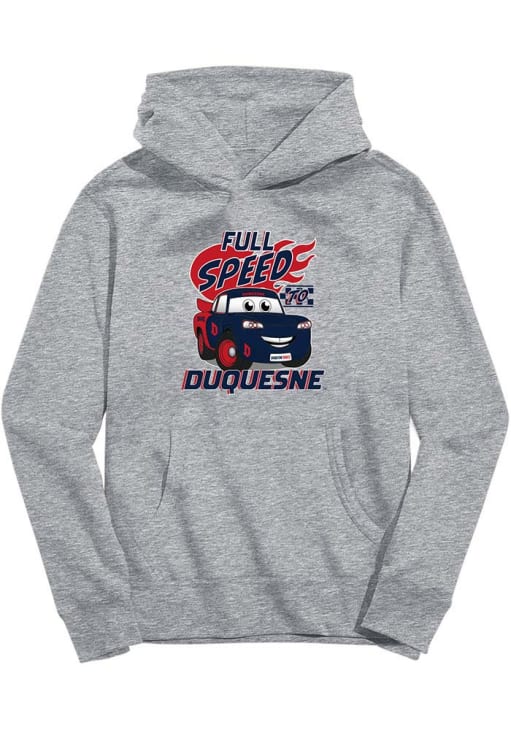 Keep your little Duquesne fan warm with this Duquesne Dukes Long Sleeve Hoodie! They'll be cozy for the game in this Duquesne Toddler Grey Full Speed Hooded Sweatshirt. This Dukes Long Sleeve Hoodie features a screen printed team graphic for the ultimate expression of pride.