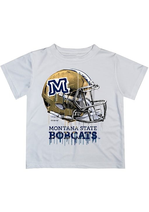 Get your future Bobcats fan ready for the tailgate in this Montana State Bobcats Toddler White Short Sleeve Tee. This MSU Bobcats Tee features a dripping football helmet graphic.