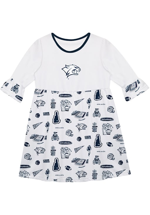 Show off your unique style with this Wildcats Girls Dress. Featuring a hand sketched artwork perfect to keep the new fan cheering for your favorite team, this New Hampshire Wildcats White Dress is the perfect way to show your style and New Hampshire Wildcats pride at the same time.