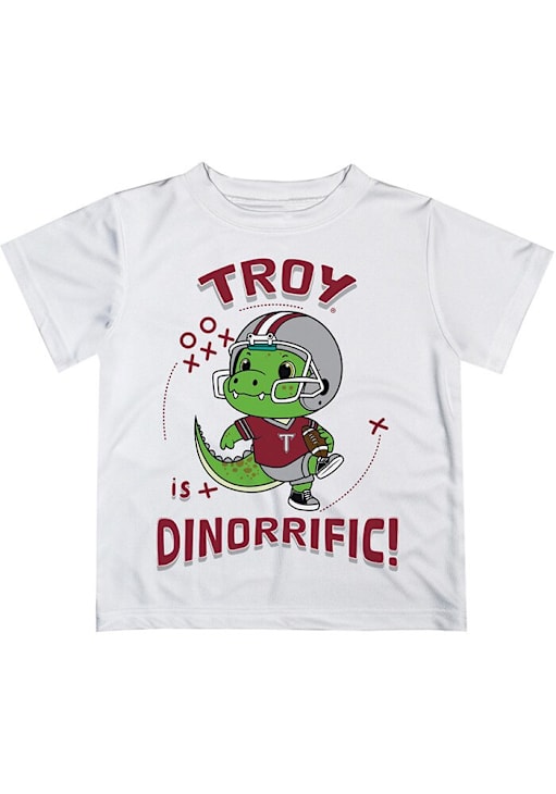 Product Details Product Details Moisture wicking breathable soft natural feel knit fabricLightweight fabric for easy comfortSublimated graphics and colors Officially Licensed Every future Trojans fan needs this Troy Trojans Infant White Short Sleeve Tee. This Dino-Riffic T-Shirt features a sublimated team graphic.