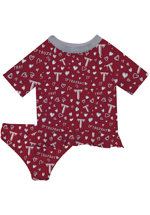 Kids, show your support for your favorite team in this Troy Trojans Infant Girls Maroon Short Sleeve Tee! This T-Shirt features a repeat hearts and logo pattern, so everyone will know you cheer for the Troy! This is the perfect Troy Trojans Infant Girls T-Shirt for wearing from every day to game day. Cheers to Troy!