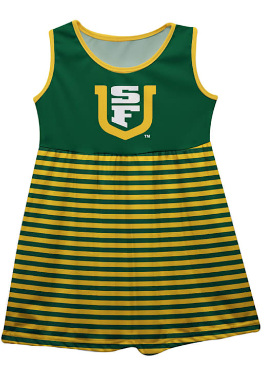 Show off your unique style with this Dons Girls Dress. Featuring a striped skirt and team logo on solid color chest, this USF Dons Green Dress is the perfect way to show your style and USF Dons pride at the same time.