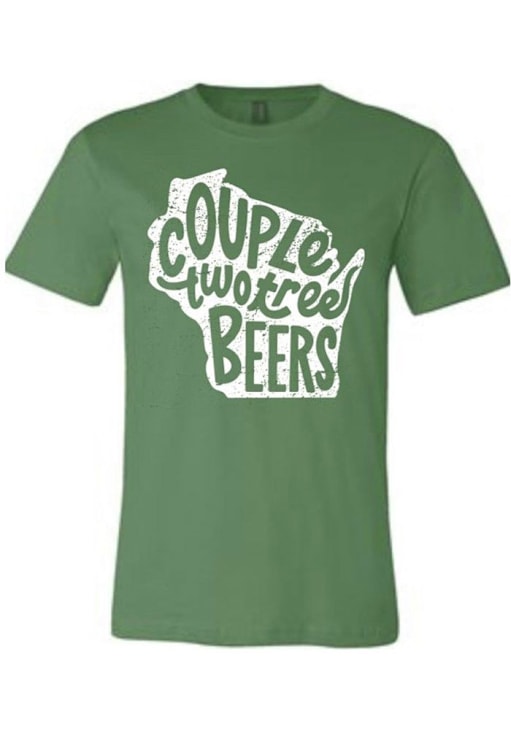 Support your Wisconsin in this Green Short Sleeve Fashion Tee! This Couple Two Tree Beers Fashion T Shirt features a screen printed design. Be ready to shout "" when you wear this State of Wisconsin Short Sleeve Fashion T Shirt in the stadium or on the street.