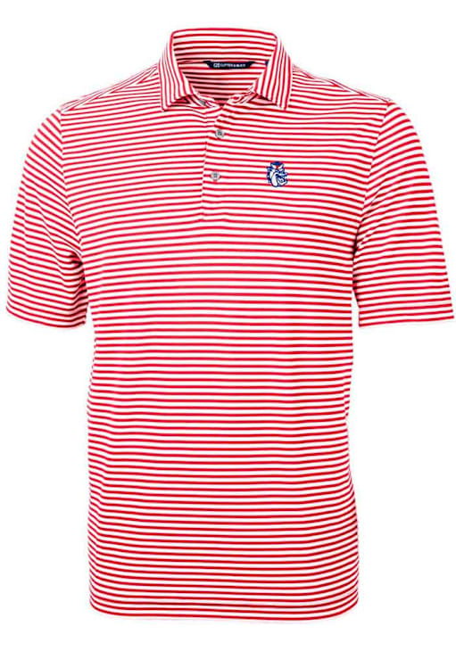 Cutter and Buck Fresno State Bulldogs Mens Red Vault Virtue Eco Pique Stripe Short Sleeve Polo