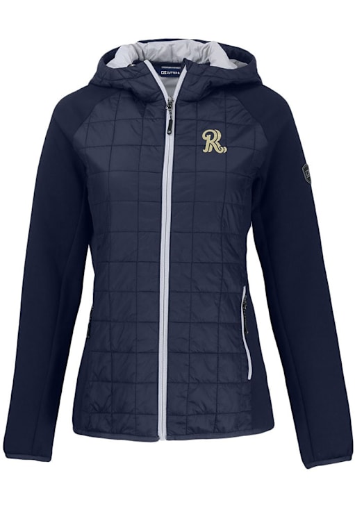 Keep the chill out with this Frisco Rough Riders Womens Navy Blue Rainier PrimaLoft Hybrid Medium Weight Jacket! Cheer on the Rough Riders in this Medium Weight Jacket. With a lightweight, recycled, down-alternative insulation, you won't want to be caught without this Medium Weight Jacket on gameday.