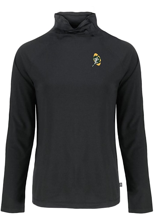 Cutter and Buck Green Bay Packers Womens Black Historic Coastline Eco Funnel Neck Crew Sweatshirt