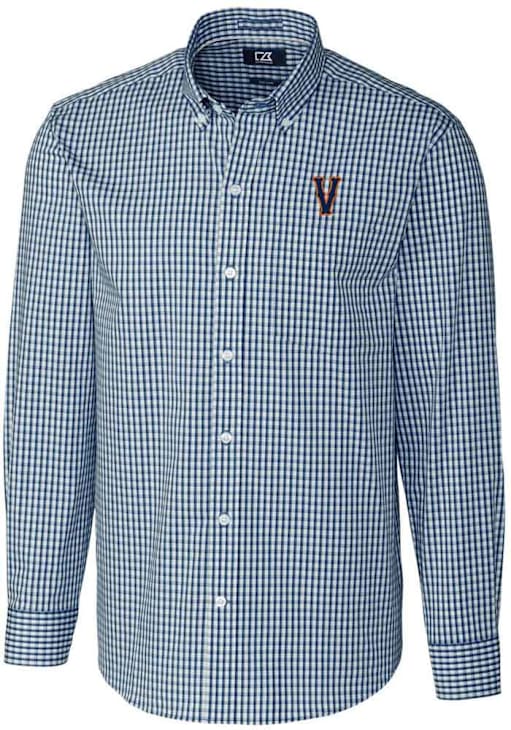 Add some Cavaliers spirit to your workwear with this Virginia Cavaliers Dress Shirt! Show your team pride with the Navy Blue Vault Easy Care Gingham Long Sleeve Long Sleeve Button Down Shirt. This Long Sleeve Dress Shirt features a vault team logo. The UVA Long Sleeve Button Down Shirt features great details for comfort and style.