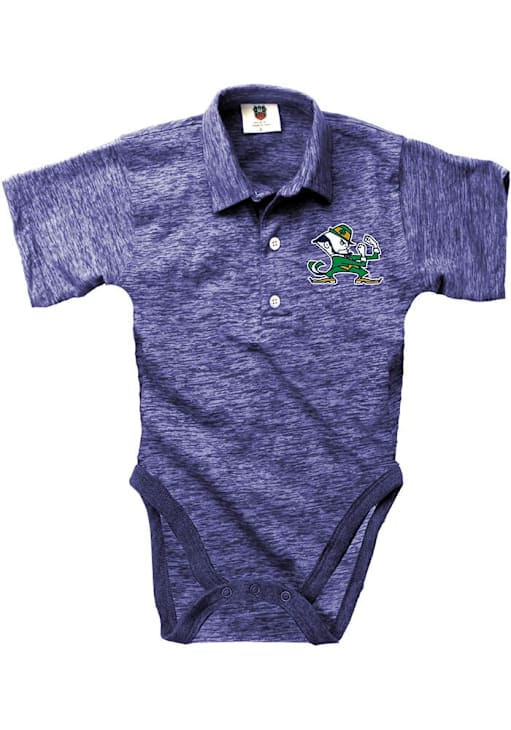 Product Details Product Details 3 button placketShort sleeve poloScreen print team logo left chestCotton / poly blendPerfect for any young sports fan!80% COTTON / 20% POLYESTERImport, Domestic Officially Licensed Hit your baby's style out of the park with this Notre Dame Fighting Irish Baby Navy Blue Cloudy Yarn One Piece Polo! This Fighting Irish Polo Romper features a screenprint team graphic.