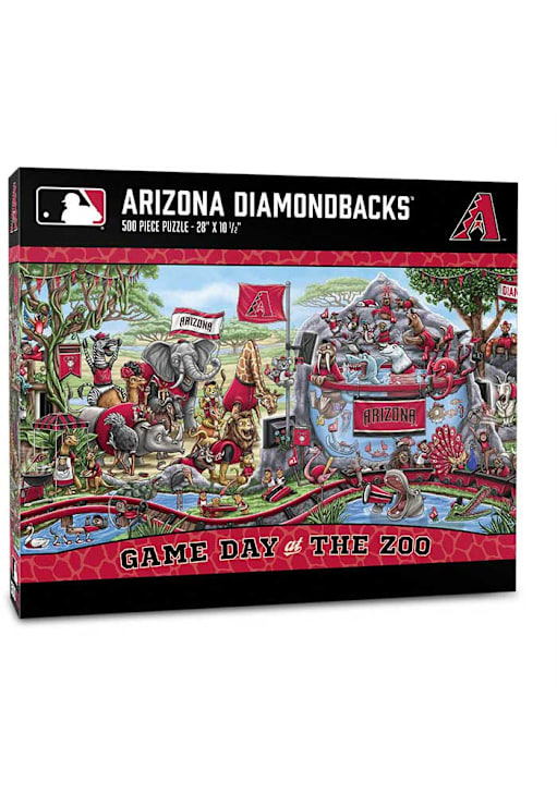 Product Details Product Details 10.5"x28" when completed500 piecesOriginal artworkCardboard materialGreat gift for fans of any age Officially Licensed Give yourself a brain teaser with this Arizona Diamondbacks Game Day at the Zoo Puzzle. This Puzzle features a picture of zoo animals geared up for the season.
