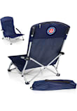 - Heavy-duty, fold-flat portable beach chair that has padded armrests