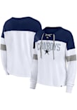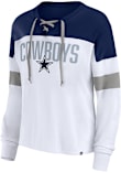 Display your Dallas Cowboys spirit in this Cowboys White T-Shirt! This Cowboys Laceup Long Sleeve T-Shirt makes a great layer for cooler nights cheering on the Cowboys. Featuring a screen print team name and logo on center front, this Dallas Cowboys Long Sleeve LS Tee is a must-have for any fan. Go Cowboys!!
