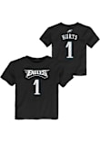 This Philadelphia Eagles Player T Shirt is the perfect way for your little Eagles fan to show their support for the Eagles and Jalen Hurts. This Black Short Sleeve Jalen Hurts Player Tee features a screen print player name and number.