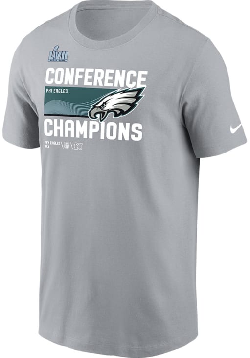 Show off your team pride in this Philadelphia Eagles Grey 2022 Conference Champions Short Sleeve T Shirt! This Philadelphia Short Sleeve Tee features a screen print team and NFL Playoffs graphics on center chest. Make sure everyone knows you root for the Eagles with this Grey Philadelphia T Shirt. Go Eagles!