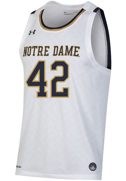 Feel like one of the Fighting Irish in this Notre Dame Fighting Irish Basketball Jersey! You'll definitely stand out in this Fighting Irish White Replica Jersey. Featuring a combination sublimation and print application of team name and player number, this Notre Dame Fighting Irish Basketball Jersey is the perfect way to show off your Fighting Irish support.