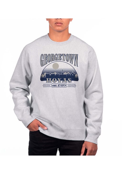 Uscape Georgetown Hoyas Mens Grey Heather Heavyweight Long Sleeve Crew Sweatshirt